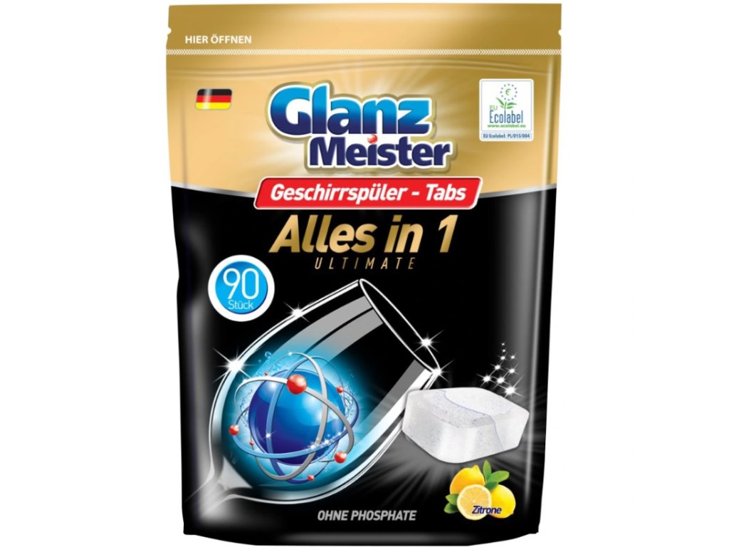 Tablety do myčky GlanzMeister Platinum obsahují vysoce aktivní složky, které rychle a důkladně odstraní i ty nejodolnější nečistoty.
